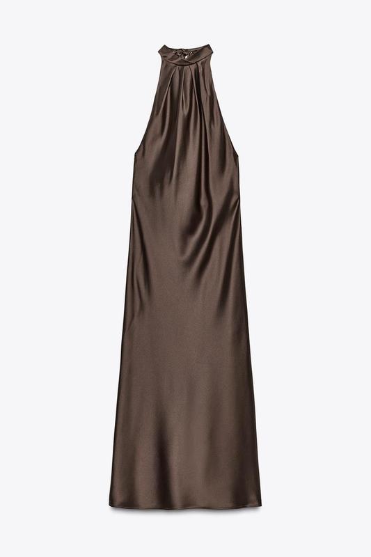 Сукня з коміром-петлею. Відкрита спина з бантом. Коричневий | 1165/164/700
