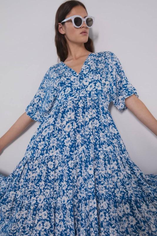 В цену входит оплата Шкафы. Состояние идеальное, дефектов нет, следий приема нет Цветок как на фото, белый голубой и синий Ткань вискоза тонкая, крой овер, воланами Размер указан L но смотрите по меркам плечи спущенные 62сы пол обхват груди 50 см полхват талии завышена 50 см полхват бедер 64 см длина 98 см