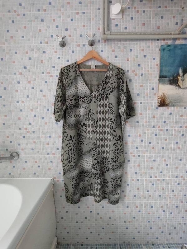 Оригинал, состояние идеальное, без дефектов. Качественный лен. ПОГ 59,плечи 44,длина рукава 32,длина 101.