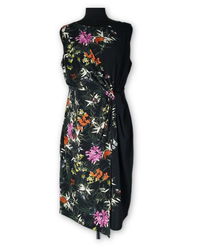 Платье в идеальном состоянии. Размер 16, наш 48-50. Имеется нюанс на подкладке в середине, есть стрелка (спущенная петля). Состав 100% полиэстер Замеры длина 97 см ширина в плечах 37 см ширина в груди 46 см ширина в талии 43 см ширина в стегнах 51 см