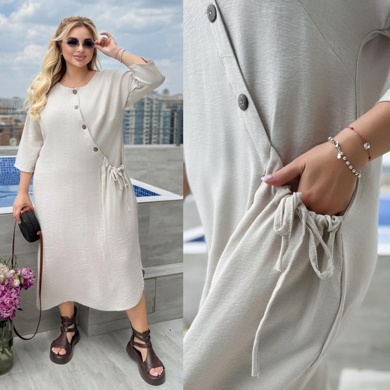 Сукня в стилі бохо🛍️ Модель: 200 Ціна: 1040 грн 🔥Розмір: 48-50, 52-54, 56-58, 60-62, 64-66 Тканина: льон бохо Колір: темно синій, беж Сукня в стилі бохо, якісна, дихаюча тканина, не парить. Асиметрична застібка, декоративні гудзики додають оригінальності та візуально роблять стрункіше сілуєт. 📌Виміри: 48-50 Обхват грудей: 108 см Біцепс: 40 см Обхват стегон: 128 см Довжина виробу: 122 см 52-54 Обхват грудей: 112 см Біцепс: 42 см Обхват стегон: 132 см Довжина виробу: 122 см 56-58 Обхват грудей: 122 см Біцепс: 44 см Обхват стегон: 140 см Довжина виробу: 122 см 60-62 Обхват грудей: 130 см Біцепс: 46 см Обхват стегон: 146 см Довжина виробу: 122 см 64-66 Обхват грудей: 140 см Біцепс: 48 см Обхват стегон: 154 см Довжина виробу: 126 см