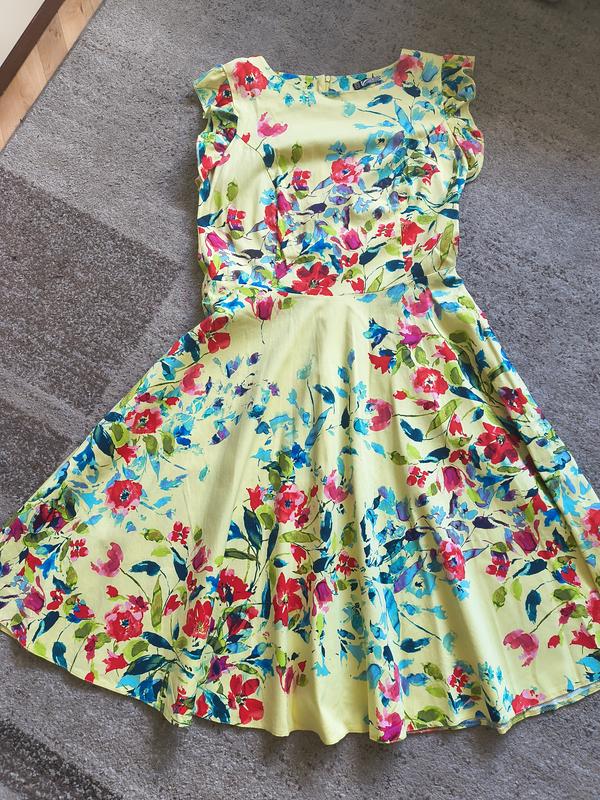 Яркое летнее платье. В комплекте два пояса: синий и красный. Застегивается сзади на молнию. замеры сказаны на фото. Карно сядет на рост +/- 170см. Натуральная ткань.