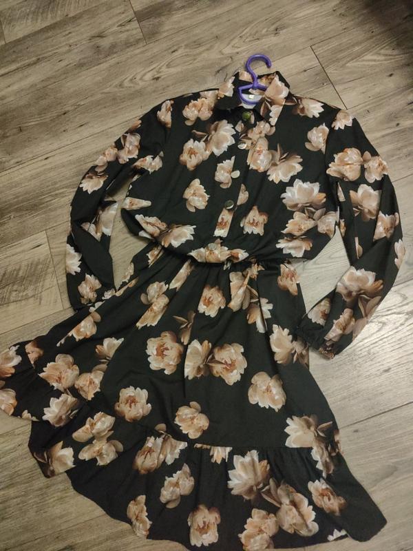 Б/у в идеальном состоянии очень красивое платье с цветочным принтом.Платье на талии на резинке, в до талии на кнопках.Резинка в нерастянутом состоянии 60см, тянется до 75см, длина по спине 100см, длина рукава 60.Плава на худи на худи.