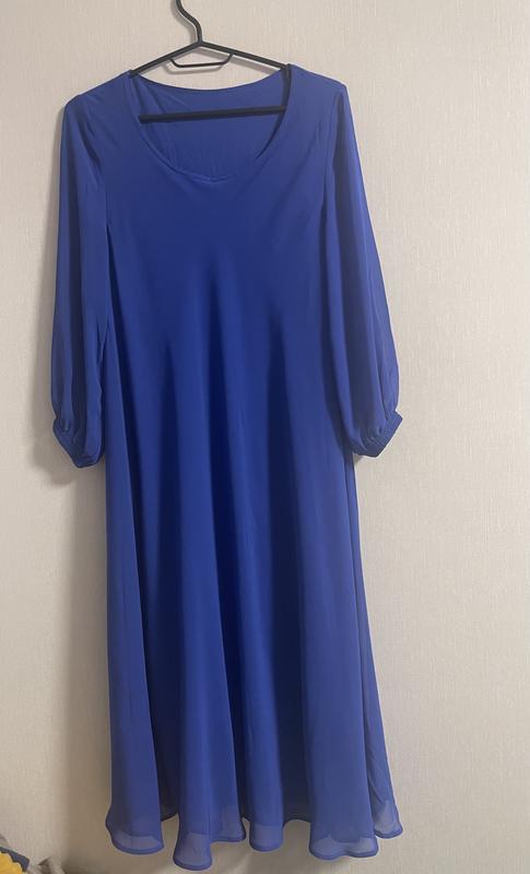 Сукня шита на замовлення. Під низом трикотаж, який тягнеться і облягає фігуру. Зверху шивон. Дуже гарно пошите. Рукав прозорий