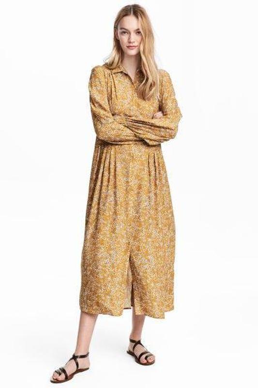 Бренд: H&M Размер: 34 (XS) Состояние: как новое, идеальное Материал: 100% вискоза Цвет нежно-голубой с мелкими цветочками принтом Легкое платье-миди от H&M из вискозы - идеальный вариант для весны и лета. Модель с длинным рукавом, рубашечным воротничком и застежкой спереди на пуговицы к поясу. Свободный фасон с легким расширением книзу обеспечивает комфорт и стильный силуэт. Подойдет для офиса, прогулок или путешествий.