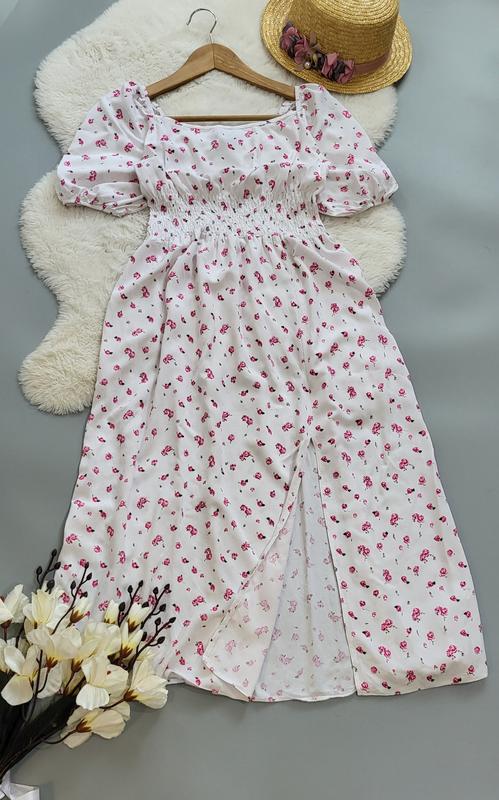 Платье миди с разрезом на ноге, в принт цветов из вискозы