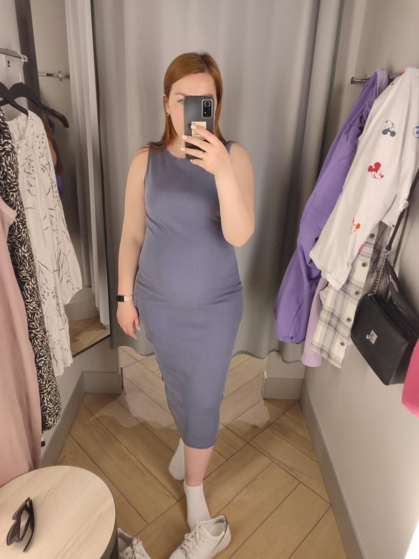 Платье миди от бренда H&M голубо-серого цвета. В идеальном состоянии - была одета несколько раз. Подойдет и на беременный животик, и на обычную фигуру. Очень красиво тянется. Ткань натуральная, поэтому летом в ней комфортно.
