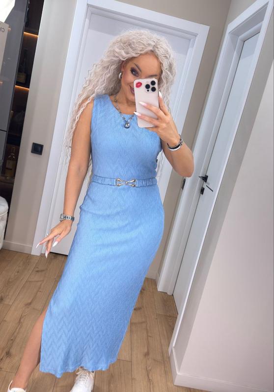 Платье "Афродита" с поясом в комплекте. Стильный дизайн идеально подчеркивает фигуру, пояс в комплекте создает привлекательный силуэт, боковой разрез обеспечивает легкость движений. Оригинально и стильно смотрится, невесомая на теле. Материал: сатин в дизайне "волна" Легкий и приятный к телу, очень хорошо тянется. Размеры: 42- 44, 46 -48, 50- 52, 54- 56 Цвета: фисташка, графит, мокко, голубой, черный