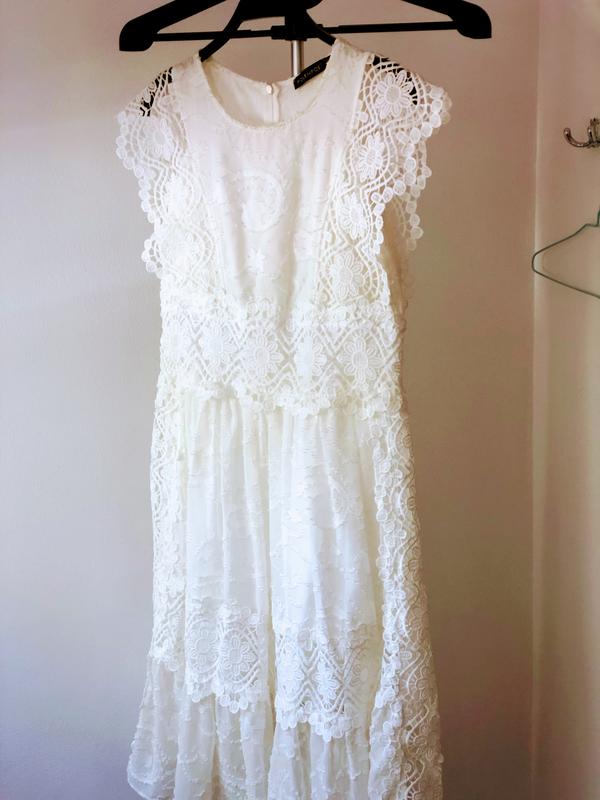Новая с биркой. Натуральная вискоза, полностью хлопковая подкладка. Очень комфортная в жару, не парит. Очень качественное кружево- объемное. Размер 44-46. В реальности цвет снежно- белый