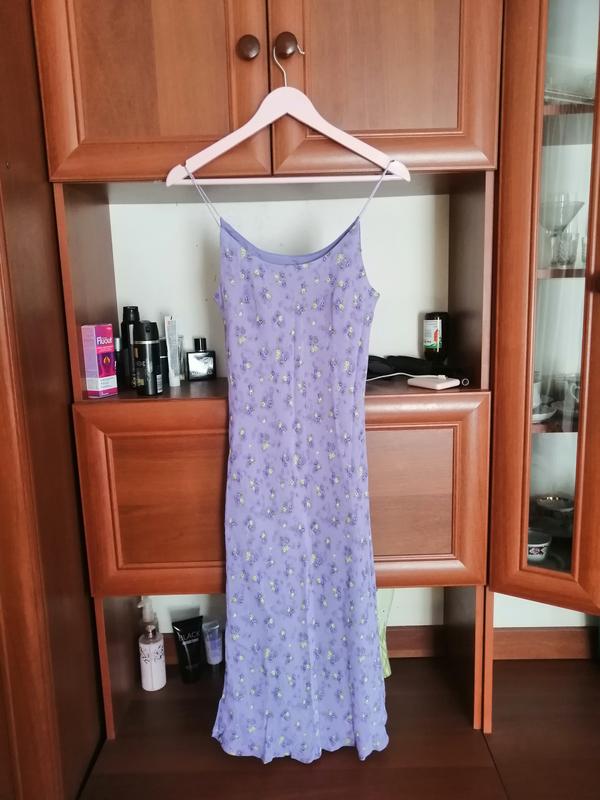 Платье в цветочный принт. Размер S, M. Одетая один раз. Сиреневый цвет с невероятными цветами. Верх 100% вискоза. Есть подклад.