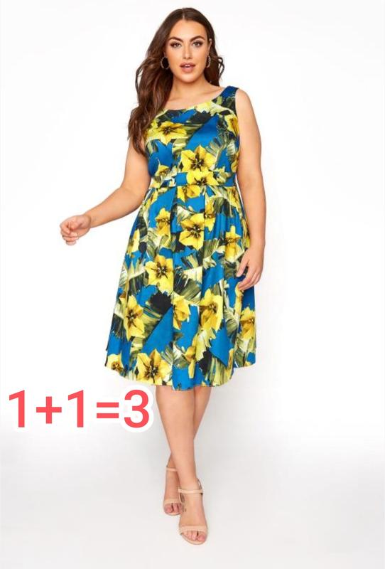 Красивое тропическое синее платье Yours с желтым цветочным принтом. Легкий коттон, универсальный фасон. Идеальна для летних образов. Очень качественная 💙 Новая с ценником 27 Ø (1500 грн) Размер 22/4XL. Длина 103 ПОг 63 + виточки ПОт 60 ПОс 80