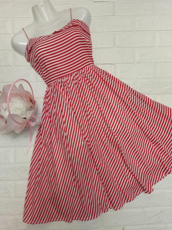 Платье женское клеш в полоску, бретели на завязке, ткань тонка, легкий коттон,на тонкой подкладке, размер указан 12, замеры на фото