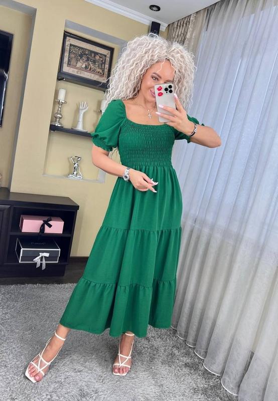 ☑️Цвета: белый, зеленый, черный, капучино ☑️Код 0161 ☑️Размеры: от 42 до 50 ☑️Ткань: американская креп-жатка 🎁Всегда помните, что во всем мире вы одна такая! А потому стоят только самого лучшего! Так что ловите супер хит – красивое, слегка игривое и романтичное однотонное платье, которое идеально впишется в любой вечерний или повседневный образ. Выполнена она из воздушной и легкой ткани, вырезом каре, объемными рукавами-фонариками, которые можно одевать в нескольких вариантах, закрывая и открывая плечи, с простроченным топом в формате резинки и длинной расклешенной юбочкой с соблазнительным разрезом по ножке.