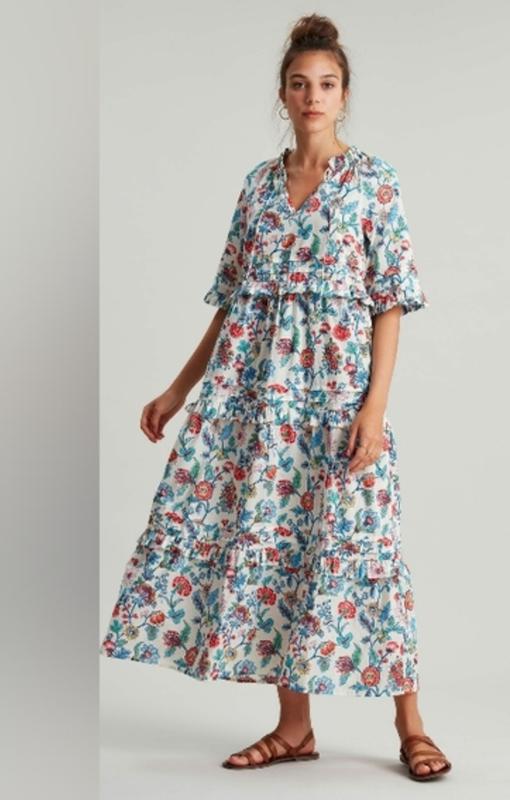 Летнее коттоновое платье миди, ярусное,с карманами jonles 100% коттон