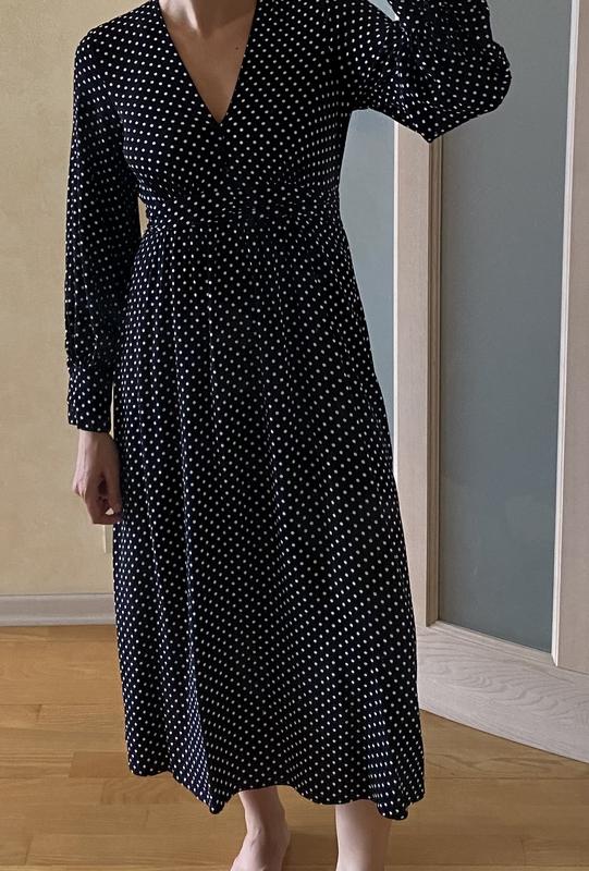 Сукня Mango в горошок міді, віскоза. Довжина 123 Довжина рукава 60 НОТ 37, там в середині резинка і вона тягнеться. По бірці S, підійде на середню М. Дефектів немає, стан ідеальний.