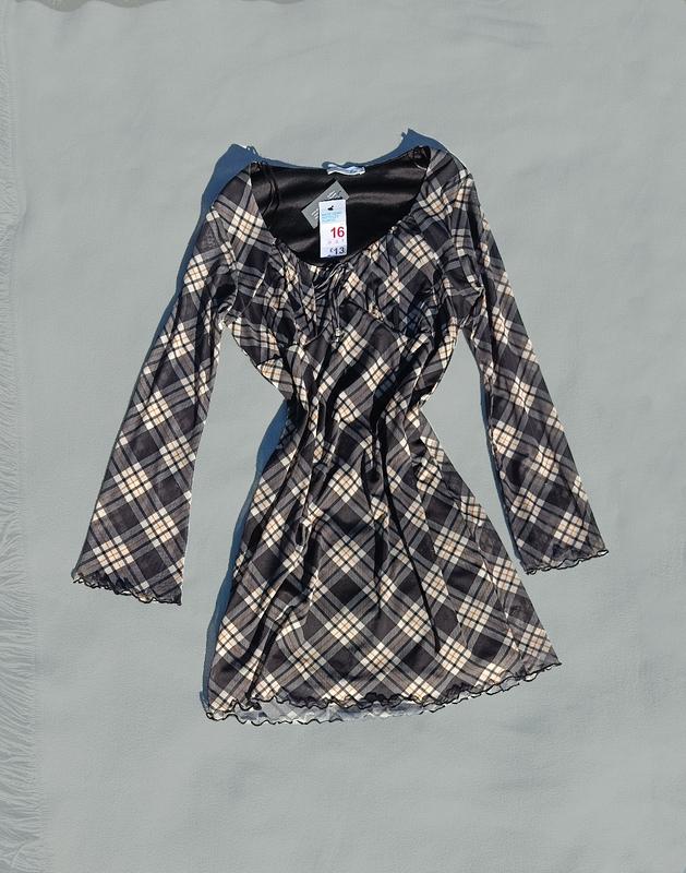 Новое платье в клетку Primark, подойдет на размер L, рукава полупрозрачные