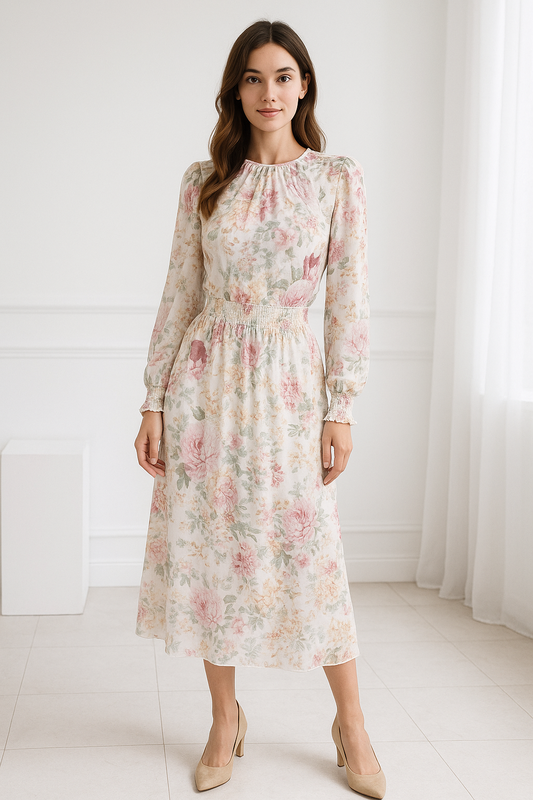 🌸 Нежное платье в цветочный принт Размер: 42-46 Материал: легкая ткань, полупрозрачный шифон с подкладкой Цвет: молочная основа с пастельными цветами - розовыми, кремовыми, бледно-зелеными 👗 Длина миди - изящно смотрится на любой рост 👑 Талия со сборкой подчеркивает силуэт, но не сковывает ✨ Рукав длинный, с мягкой резиночкой на манжете 🎀 Идеальна для фотосессий, праздников, романтических прогулок и просто чтобы почувствовать себя женственной каждый день 💌 Состояние: б/у, но как новая - без дефектов, пятен или повреждений 💸 Цена: 560 грн 🚚 Возможна отправка / примерка по договоренности Пишите в сообщение — отправь дополнительные фото или видео по запросу ❤️