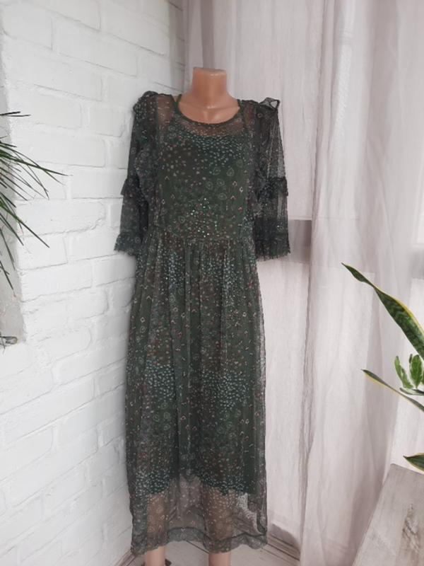 Великолепное платье, состоит из двух отдельных платье, первое длинная майка из вискозы, вторично сетка местами разбитая пайетками, размер С,М,полуобхват груди сетки-50 см,ПОТ-45 см, длина-123 см, майка облегающая фасон, тянется, длина-113 см,без дефектов