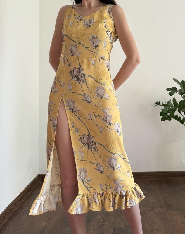 Сукня жіноча літня міді квіти квітковий принт з розрізом сарафан
