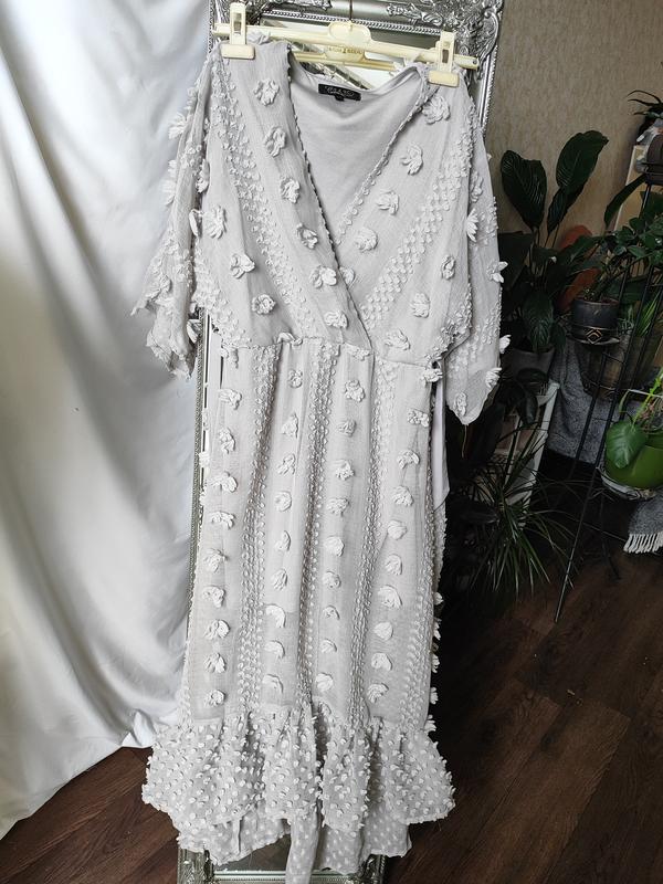 платье размера S/M на поясі позаду трошки довша на подкладке сверху плотная ткань, держит форму