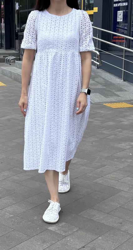 Котонова сукня міді. Одягнута на параметри Груди 88 Пояс 70 Стегна 98 Сидить впритик. Краще з меншими замірами грудей .