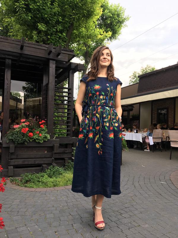 Дуже гарне вишите лляне плаття, розмір 38, м, має пояс у наборі , на мене завелике. Одягала 2-3 рази , без будь яких дефектів. Пів обхват талії - 40 см, пів обхват грудей 45 см, довжина 117 см, плаття має кишеньки , змійка збоку