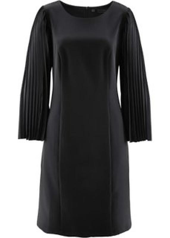 Трендова чорна класична сукня з плісерованими рукавами bonprix collection Розмір 42 Стан ідеальний Довжина 100-101 ПОГ 50 тягнеться 55 Виточки для грудей ПОТ 45 тягнеться 49 ПОБ 55 тягнеться 60 Рукав 56-57 широкий 90% поліестер, 10% еластан Підкладка 100% поліестер