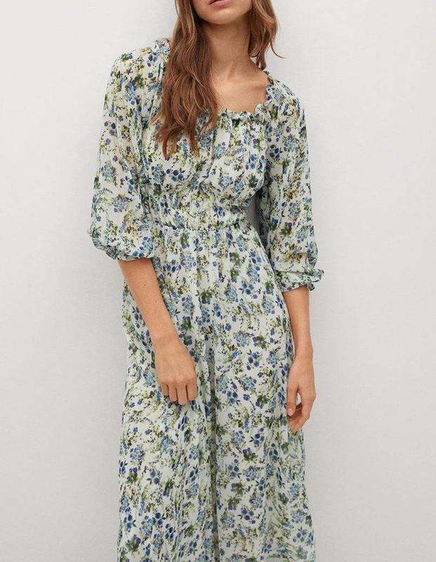 Платье в цветы Манго Размер - Л(12) Пог 54 Пот 33, тянется до 53 Пос 61 Длина 128 Полиэстер
