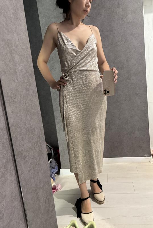 Гарний сарафан чи плаття міді, має гарний колір, на сонці сяє. Пасок для декору,але можна завʼязати навколо талії, тонкі брітелі.