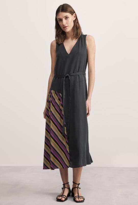 Код продукта: T976348H Размер указан 16 /52 Новое с этикеткой Об этом стиле Это платье Jaeger из шелковистой ткани Lyocell™ и драпированного кроя станет элегантным нарядом для торжественных случаев. Платье имеет классический крой и длину миди. Вставка с полосатым принтом добавляет изделию яркости, а сборка создает дополнительную драпировку. Талию подчеркивает пояс из ткани в тон, а незаметные боковые карманы добавляют практичности. Лиф без рукавов дополнен привлекательным V-образным вырезом. Дополните его босоножками на каблуке для создания элегантного образа.
