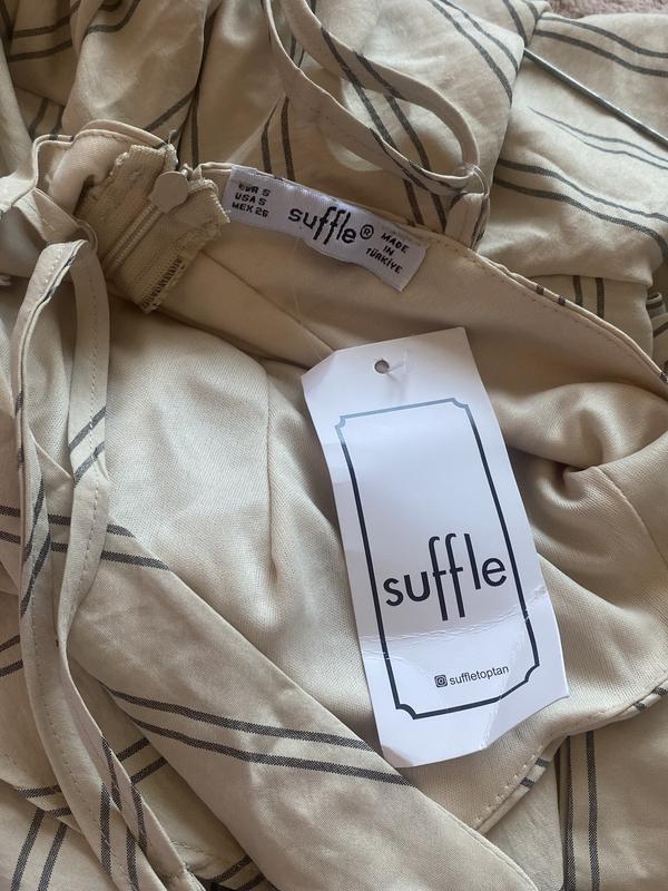 Сукня міді, розмір S Легка й дуже зручна! Бежевий колір зі смужкою, тонкі бретелі, глибокий виріз та підкреслена талія. Підійде на зріст 160–170 см. Тканина приємна до тіла, гарно тримає форму. Абсолютно нова, навіть не носилась!