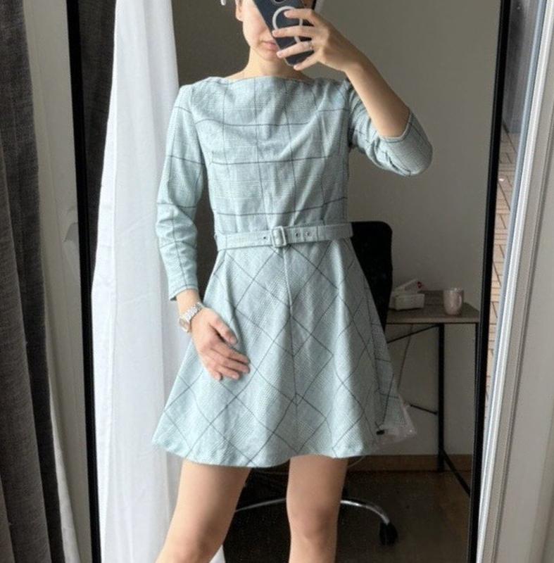 Розмір вказаний М ( на фото зріст 170/ зазвичай розмір S) Заміри сукні: Плечі: 42 см Рукав: 48 см Пог: 47 см Пот: 41 см (регулюється поясом) 85 см загальна довжина