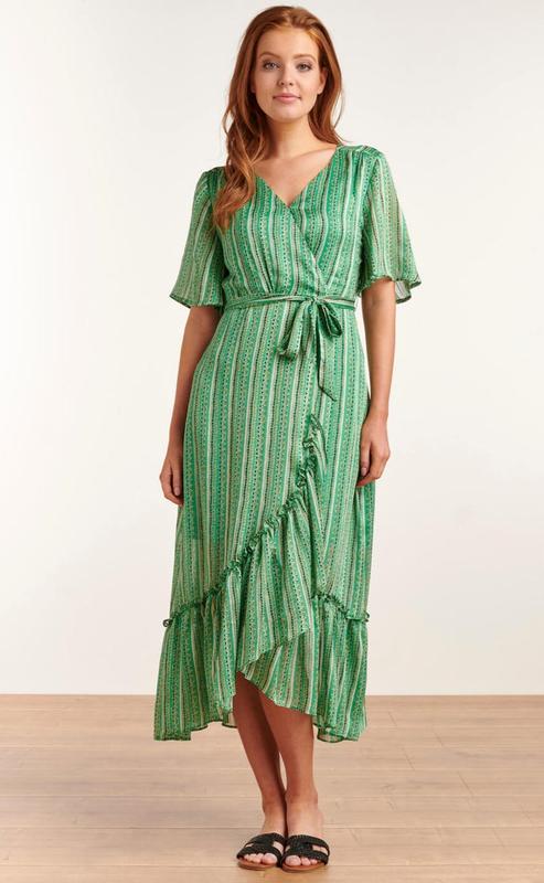 Сукня Smashed Lemon Цвет: зеленый. Материал: 100% полиэстер. Подкладка: 95% полиэстер, 5% спандекс. Материал с тонким узором на зеленой ткани без эластичности, с вплетенным люрексом та тонкими блискучими смужками. Запах на груди фиксируется небольшой кнопкой. Подкладка длиной примерно до колена. Талия подчеркнута свободным поясом из той же ткани, переходит в изящную юбку с запахом, которая немного короче спереди, чем сзади. Большая сборка внизу отлично танцует во время движения, запах в юбке красиво распадается. Указаны размеры: EUR M/38 UK 12 US 8 Замеры: длина - 132 см (40/92) плечи - 39 см рукав - 28 см ПОГ - 50 см ПОТ - 41 см ПОС - 58 см пояс - 170 см Очень красивое и стильное платье! Состояние отлично! Оплата 100% на картку ПриватБанку. Доставка Новой Поштой или Укр-почтой. Возвращение и обмен не предусмотрены. Обновление товара каждый день. Подписывайтесь) Большое внимание к своим отзывам! Вдалих Вам покупок!