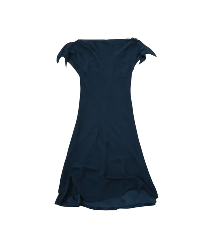 Платье трансформер черного цвета из 100% шелка. Нижний слой на шлейках прутстегивается к верхнему слою. Верхний слой слегка прозрачный, нижний нет. Замеры по нижнему слою, длина - 113 см, полуобхват под руками - 46 см, полуобхват в талии - 40 см.