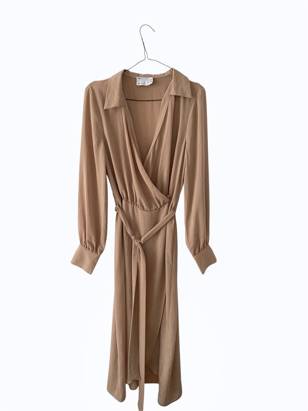 Размер евро 38 Состав: 100% полиэстер Платье миди на затин с длинным рукавом В идеальном состоянии без дефектов Пог 49 Ширина плеч 42 Пот 35 Длина 125 Длина рукава 63