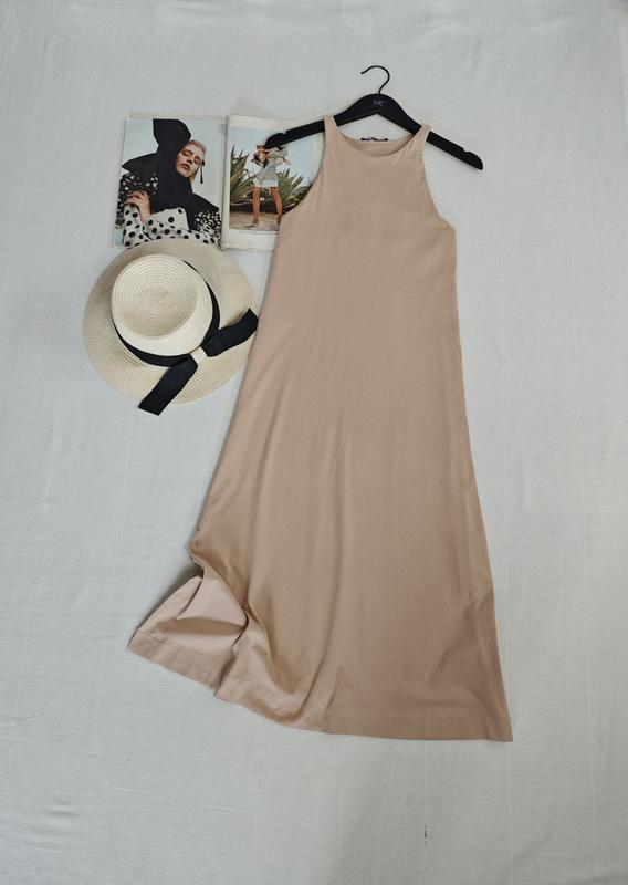 🌿бежевое платье от Zara свободного кроя, ткань коттон, тянется Размер: М Замеры:ПОГ 41 см, длина 115 см