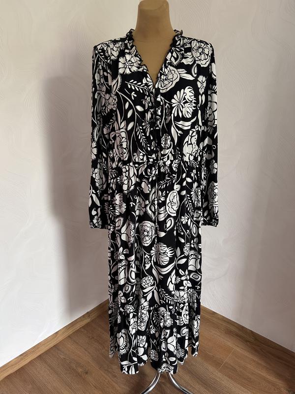 Красива,помітна, ошатна модель сукні-міді в квітковий принт.Неперевершина якість - легка штапельна тканина середньої щільності,не меніться, приємна до тіла. Виглядає дуже ефектно, жіночно і статусно! Плечі 40см ПОГ 59-60 см ПОТ-56-58см,під пояс-куліску ПОБ-63-65 см Довжина 128 см,до талії 45 см Рукав 63 см,ширина по біцепсу 19 см Арт 6426.37