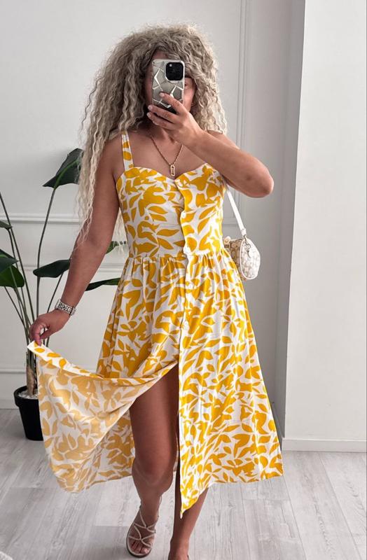 Сарафан Мод 314 Тканина штапель принт Розміри 42-44, 46-48 Стильний сарафан зі штапеля з витонченими ґудзиками по всій довжині — ідеальне рішення для літа! Легка, дихаюча тканина приємно лягає на тіло, створюючи комфорт і свободу рухів. Модель довжина міді, з витонченими бретелями та приталеним кроєм підкреслює жіночність. Ніжний принт додає образу романтичності й легкості.