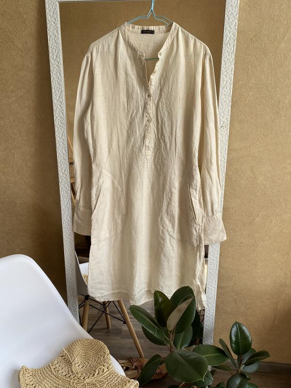 Роскошное платье, приятная натуральная ткань, на пуговичках, с рукавами, с кармашками, есть имитация под вышивку, размер 44 (пог44/ длина 100/105/ плечи 42/ рукав 65/80/ поб 56)