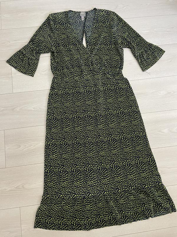 Сукня з дрібно плісированої тканини. Спереду V-подібний виріз, по спинці виріз, по талії на тонкій мʼякій резинці.