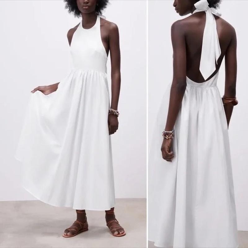 Сукня сарафан міді на завʼязках біла зара zara горловина халтер американка