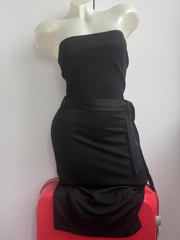 Сукня нового стану, не носилась. З поясом. Вказаний розмір S/M. Дуже добре тягнеться. Орієнтуйтесь по замірах: Довжина 88 см Верх 34 см Стегна 45-46 см