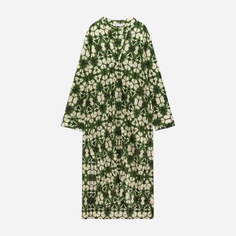 Зелена/хакі/молочна котонова міді сукня-сорочка з довгим рукавом, сукня на гудзиках з прин...