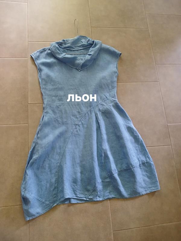 без бирки со составом, но это лён размер указан примерно подмышки 50, пояс 46, бедра 70, длина 96