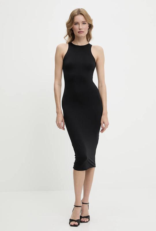 Черное ребристое платье-майка миди Zara с закрытой горловиной. Платье, повторяющее линию тела, – отличный выбор, поскольку его можно сочетать множеством способов. В летние дни она отлично смотрится с интересными украшениями, а когда погода становится холоднее, она может быть еще красива, ведь поверх нее можно накинуть широкий свитер, надеть шляпу, и получится хитовое сочетание. ✨ Стан - идеальный ✨ РАЗМЕР S ✨ЗАМЕРЫ: длина 107 см., плечи 17 см., пройма 28 см., полуобхват груди 30-45 см., полуобхват талии 26-38 см., полуобхват бедер 35-47 см. ✨ Склад: 95% бавовна, 5% еластан