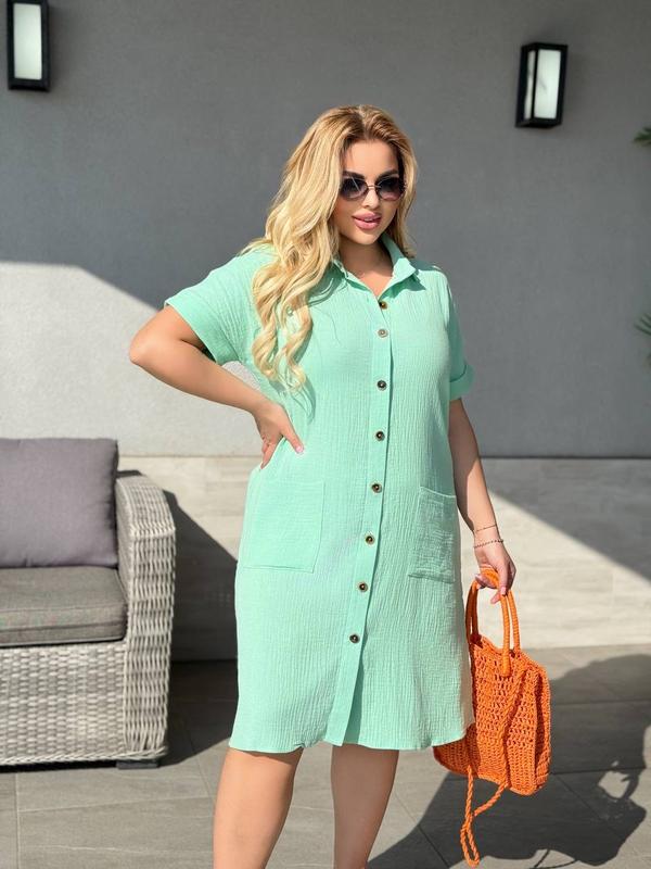 ✅мод.304 ✅Повсякденна ніжна жіноча сукня-сорочка з мусліну . Сукня-сорочка підходить жінкам будь-якого віку: молодим дівчатам воно стане незамінною річчю базового гардеробу, а старшим жінкам дозволить виглядати молодше. ✅Розмір:48-50,52-54,56-58 ✅Тканина:Муслін.Дуже легка, натуральна, приємна на дотик тканина. Особливість його в тому, що муслін буває лише натуральним, без синтетичних волокон.Тканина дуже швидко висихає. Муслін чудово пропускає повітря, тому у сукні з такої тканини ніяка спека не страшна. ✅Догляд:Прати при температурі не вище 40⁰.Вироби з мусліну слід гладити із застосуванням пари. ✅Колір:мятний,лаванда,трава,джинс,Мокко,сірий,чорний. ✅48-50 О.Г-116.,О.Б-126.,довжина-105. ✅52-54 О.Г-124.,О.Б-134.,довжина-105 ✅56-58 О.Г-132.,О.Б-142. довжина -107
