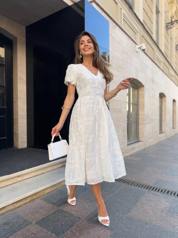 Витончена сукня в білому кольорі🤍 Мод:2637 Тканина: полікоттон Розміри: с, м, хл (маломірить) Довжина 108 см ▪️Є накладений платіж з передоплатою 200 грн ✔️Надсилання новою поштою по всій Україні ✔️ 100% передплата на картку приват банку БАГАТО НОВИНОК в моєму інтернет магазині на СТОРІНЦІ ПО ДУЖЕ ДОСТУПНІЙ ЦІНІ