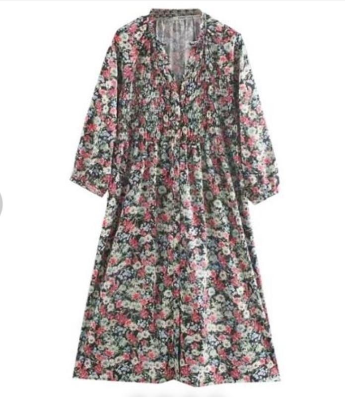 Платье ZARA в цветочный принт вискоза. НОС 78см НОГ 58см Длина рукава от горловины 64см Длина платья 114 см Новая, без бумажной бирки.