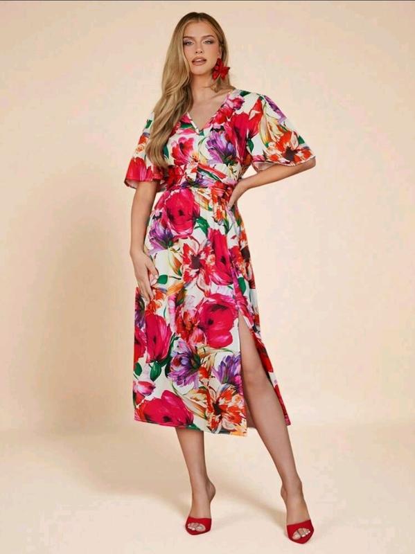 Новый, единственный экземпляр в магазине. Очень красивое длинное платье в цветочный принт. Спереди есть разрез на ножке, а на сеине резинка. Ткань легкая, совсем не мнется, не парит. Размер L можно на M-L Длина 122 см Ширина под подмышками 49 см Ширина талии 38 см (резинка на спине тянется) Ширина по бедрам 67 см Ширина плечей 40 см Длина рукава 29 см 100% полиэстер