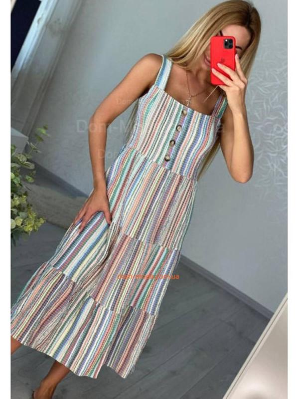 Новий стильний сарафан з класної фактурної тканини , приємний до тіла, попереду декорований деревʼяними ґудзиками, довжина міді, Турція, шикарна якість, підійде на розмір 42-46, всі бірки на фото Фото на собі не роблю